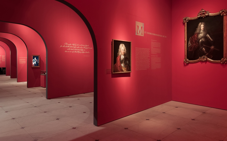 die gesamte ausstellungsarchitektur ist auf die perspektivwirkung der zentralachse, das klassische symbol des barock, hin zugeschnitten.